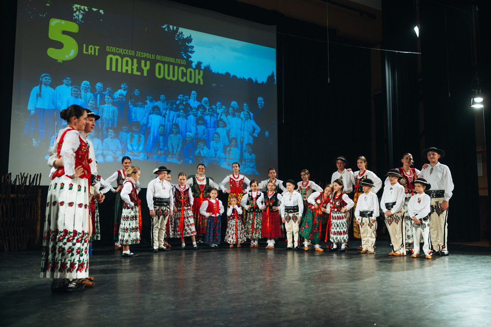 Młodsza i starsza grupa Małego OwCoKa zachwyciły nas autentycznością. Gościnnie wystąpił zespół Powicher z Rdzawki, wnosząc dawkę energii z pogranicza Podhala i Zagórza. Nie zabrakło wzruszeń przy filmowych wspomnieniach, podziękowań dla instruktorów oraz głośnego, wspólnego „Sto lat”.
